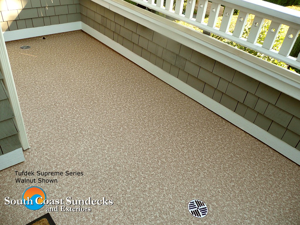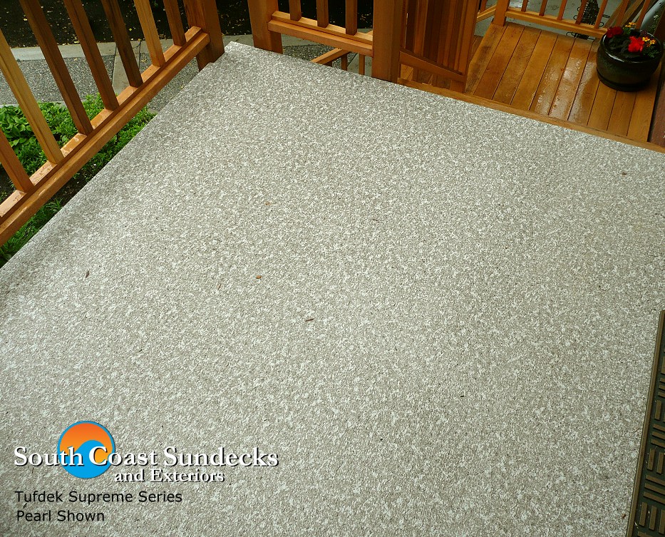 The vinyl decking membrane application is only one small facet to an outstanding vinyl deck build, rebuild, resurfacing or restoration, you will also be pleased to know that our installations are backed by Tufdek industries proprietary installation training. We only use the 'Tufdek system' installation compatible products such as the glue's, fillers, flashings and accessories even if it costs a little more, we want to make certain our customers are fully covered by the Tufdek warranty program and more importantly that your deck will look and last for as long as it should. Besides great service and remarkable results we are also known for our design aspect installations, expedited completion times, drainage and resloping solutions and flush seam techniques. And there is no quality vinyl decking installation that would be properly completed without utilizing our excellent carpentry skills and extensive construction experience and resulting solutions. In other words you really should get what you pay for and South Coast Sundecks and Tufdek Industries has a solution for most budget requirements with products and experience that is always ready to impress. Tufdeks Vinyl Decking Current Color Offerings |